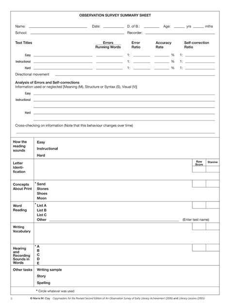 PPB - Read marie clay observation survey forms printable Library Binding Library Genesis